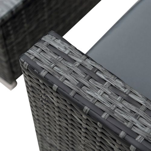 Modern 4-piece detachable outdoor furniture set offers stylish and comfortable lounging at its best Built from a galvanized steel frame with durable, weather-resistant PE rattan wicker for years of use Zippered cushions filled with 4" thick paddings for optimal comfort and relaxation Washable cushion covers made from 220g outdoor water resistant polyester cloth for easy cleaning Leveling feet adjust slightly to help raise or lower the set as you see fit Tea table features 5mm thick tempered glass for decorative and functional use Assembly required