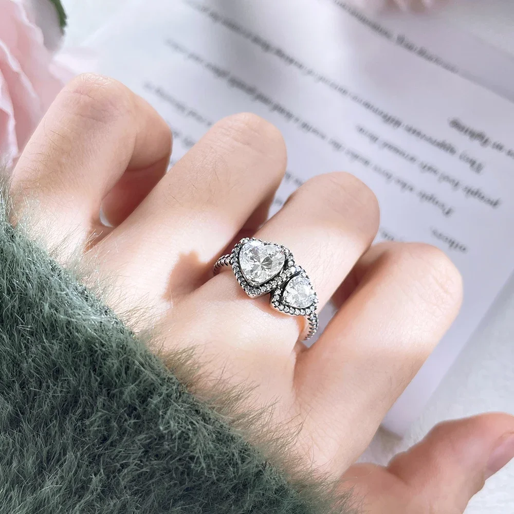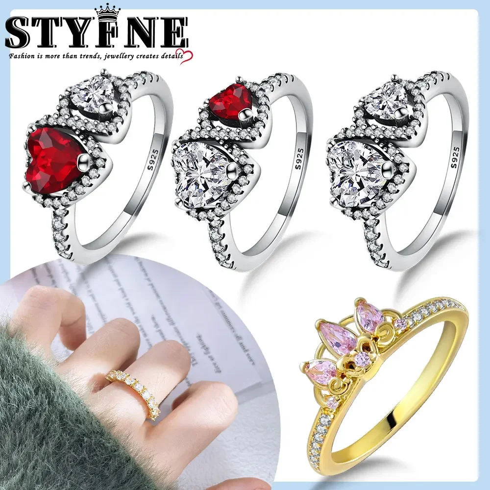 925 Sterling Silver Valentine's Day Confession Red Halo Hearts Rings Women Jewelry Anniversary Fashion Fine Love Gift For Women