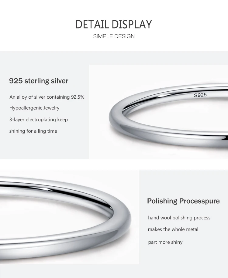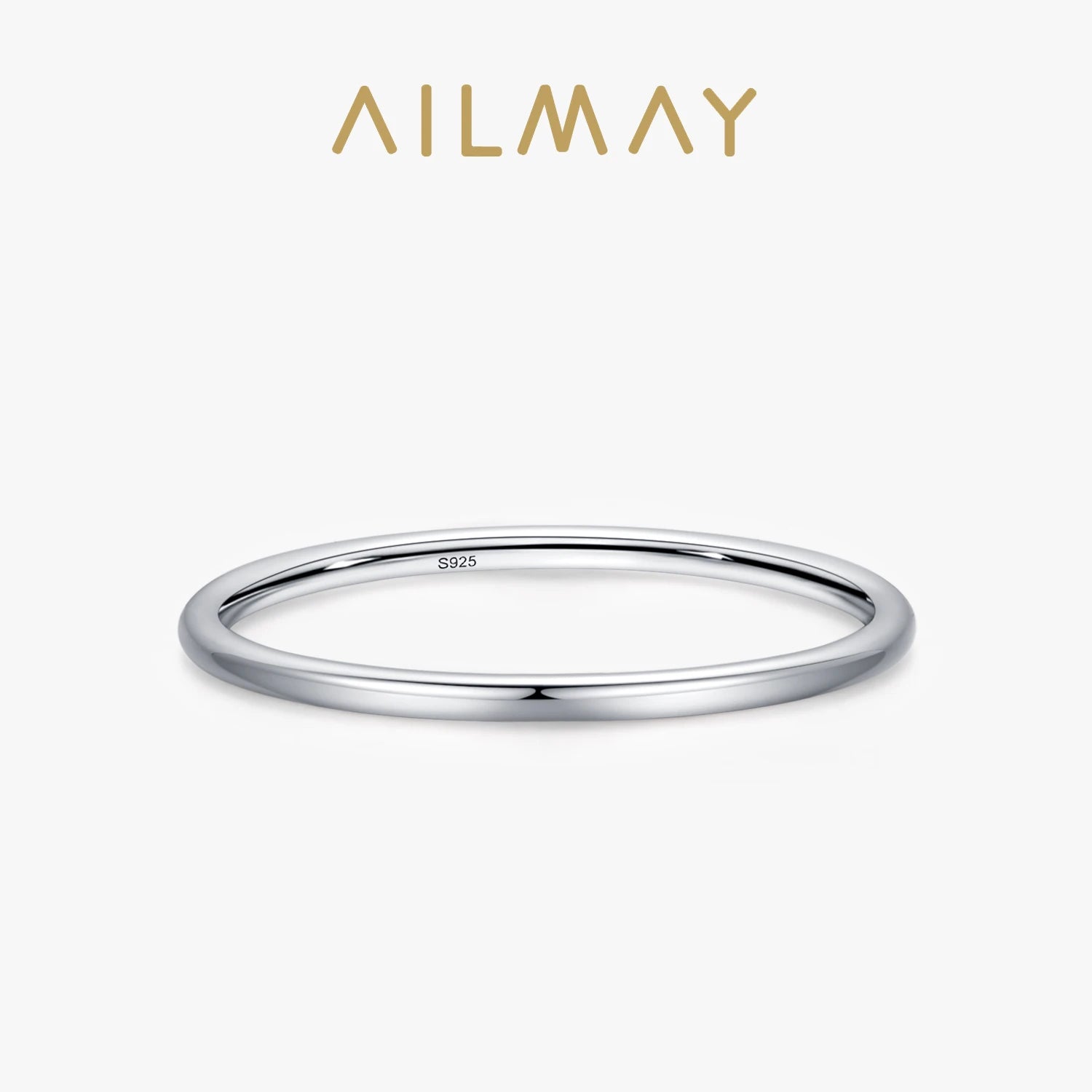 Ailmay Solid 925 Sterling Silver Minimalism Simple Smooth Stackable Finger Ring For Women Girls Party Accessories Jewelry Gifts