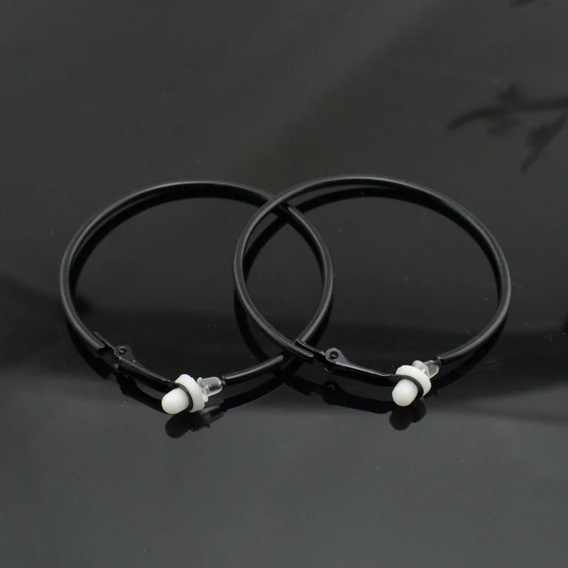 Clip on the ear without pierced Hoop earrings for women Big circle Black Round Personality punk 2021 Fashion Jewelry Accessories