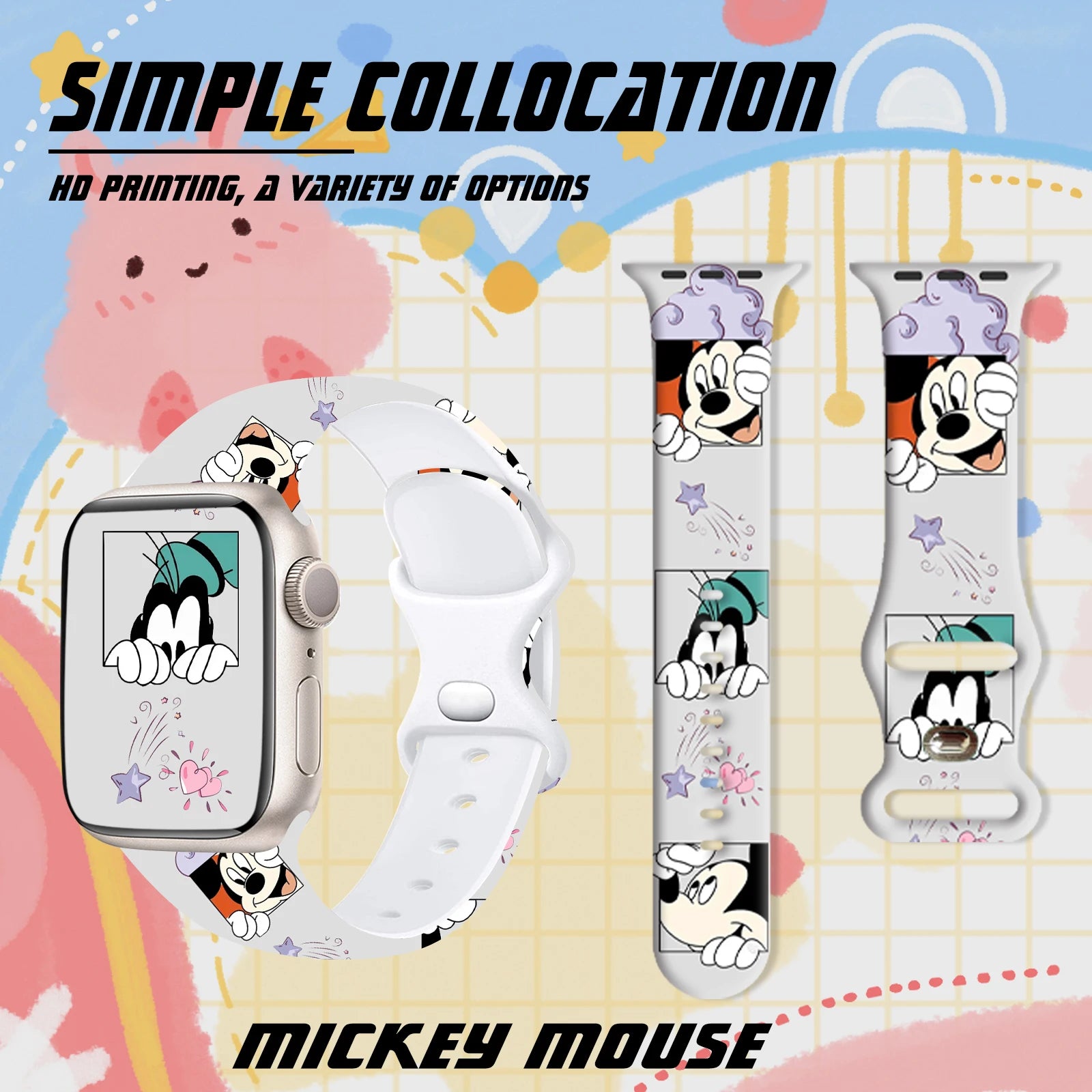 Disney Naughty Mich Silicone Strap for Apple Watch 10 9 8 7 SE 6 Printed Band Replaceable Bracelet for iWatch 46mm 45mm 44mm 42mm 41mm Watchband