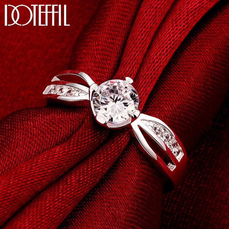 DOTEFFIL 925 Sterling Silver Full AAA Zircon Round Ring For Woman Fashion Wedding Engagement Party Charm Jewelry