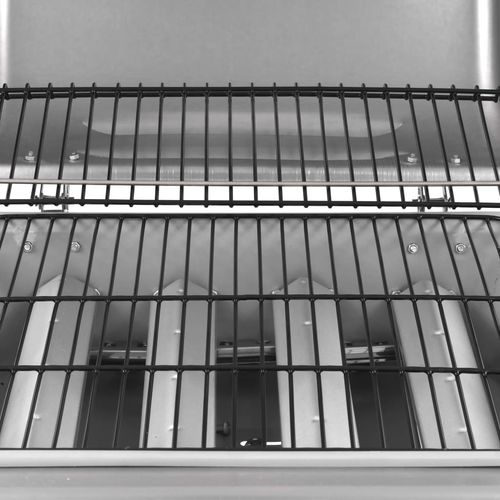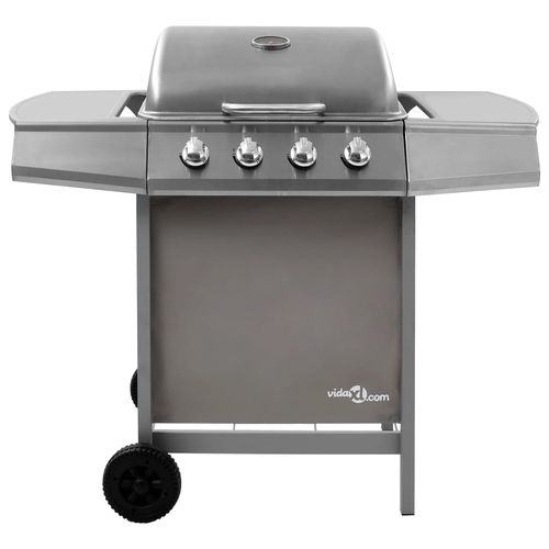 This gas BBQ grill, with 4 burners, is ideal for creating an outdoor feast for your family and friends. It will make your outdoor cooking experience sizzle, effectively turning your backyard into a second kitchen! The gas grill features a stylish and functional design. It has a large cooking surface and a heavy-duty hood with a built-in thermometer which accurately displays the cooking temperature. Side tables offer additional workspace for making sauces or your favourite side dishes. A removable grease drip container is also included, which is easy to clean. Made of heavy-duty materials, the grill is very durable. The shelf underneath provides large space to store cookware and utensils. Thanks to the 2 sturdy castors, the grill is easy to move around. Delivery also includes a BBQ cover to protect the grill from rain and dust. To connect the barbecue to the gas cylinder, a gas hose and a proper pressure regulator are required, which are not included in delivery.
