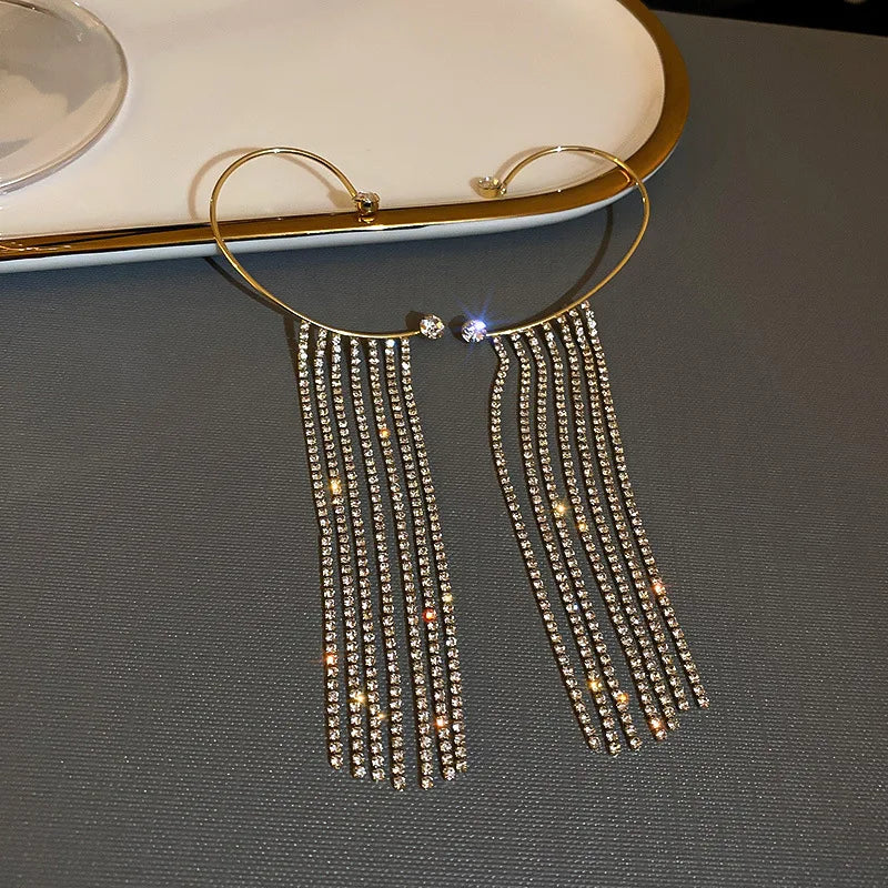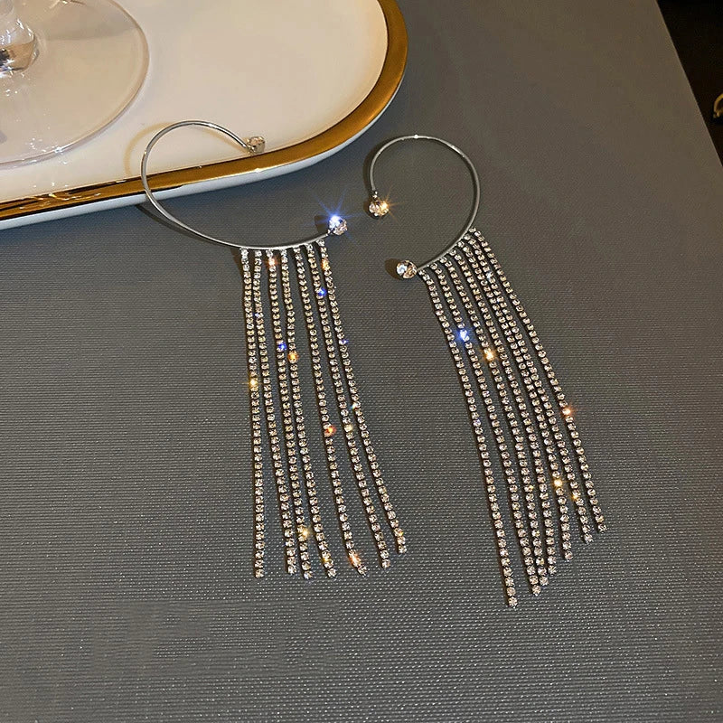 Luxury Star Butterfly Clip Earrings Female Crystal Tassel Ear Clip Earring Sparkling Zircon Ear Cuff Fashion Jewelry accessories