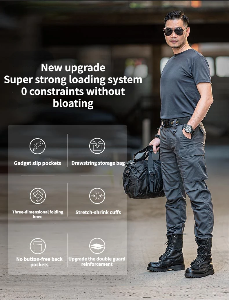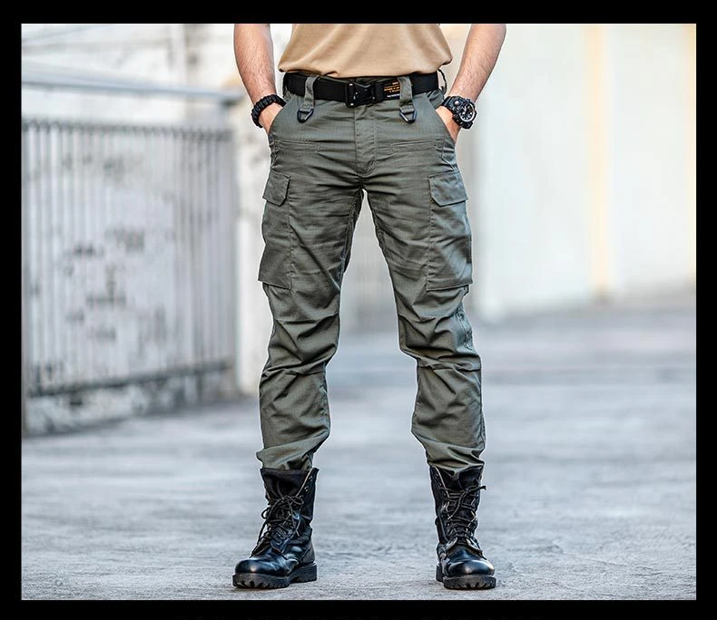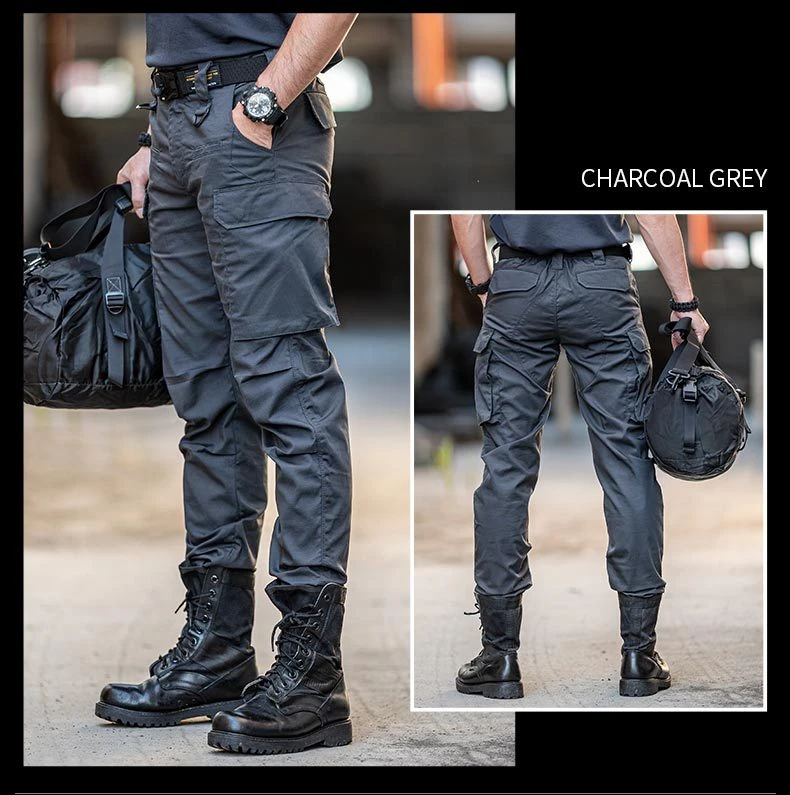 Men's IX15 Cargo Pants Stretch Straight-leg Multi-pocket Trousers Wear Resistant Splash Proof Training Work Pants Casual Jogger