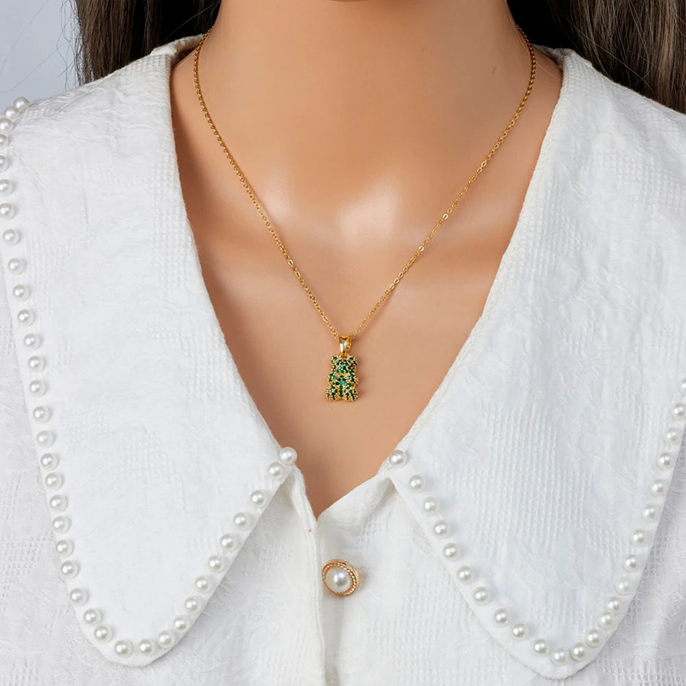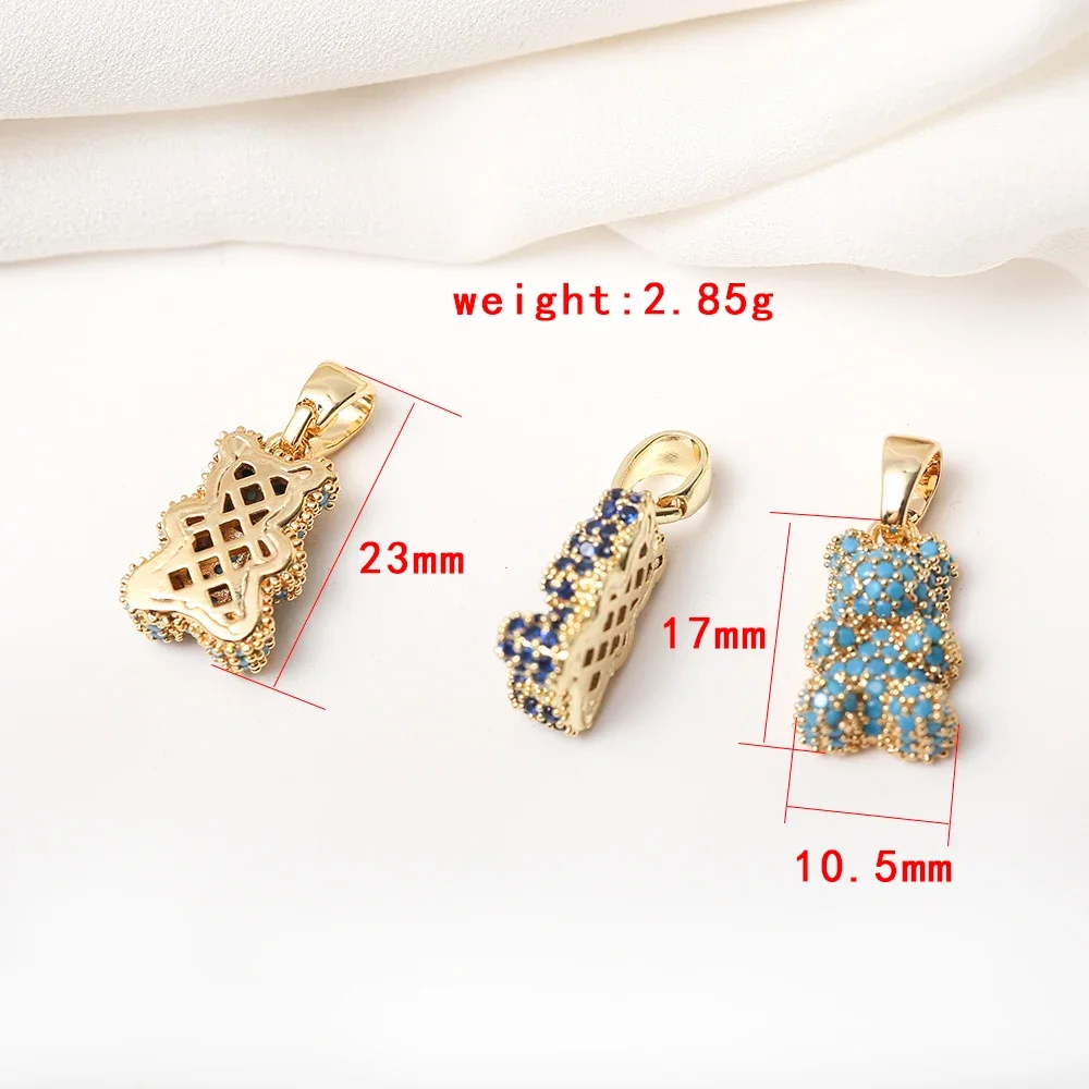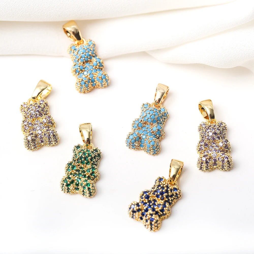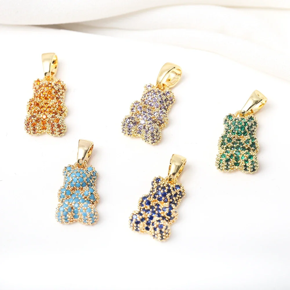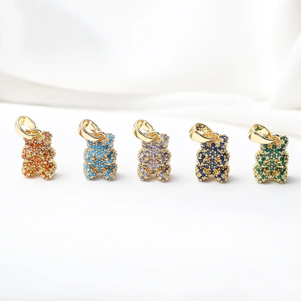 Rhinestone Gummy Bear Charm With Bail Brass Gold Plated Animal Bear Pendant For Diy Bracelet Necklace Jewelry Making Accessories