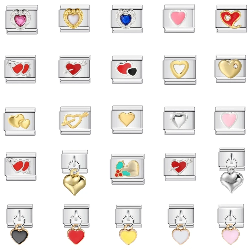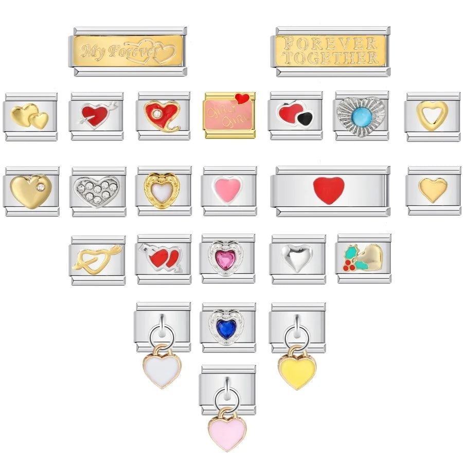 Valentine's Day Y2k Italian Charm Bracelet Links Hearts Love Lover Hand Chain Bangle Pendant DIY Making Trendy INS Jewelry Gifts